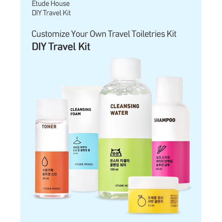 Etude House Diy Travel Kit Toner Lotion Shampoo Conditioner Body Wash Facial Foam Emulsion Shopee Indonesia